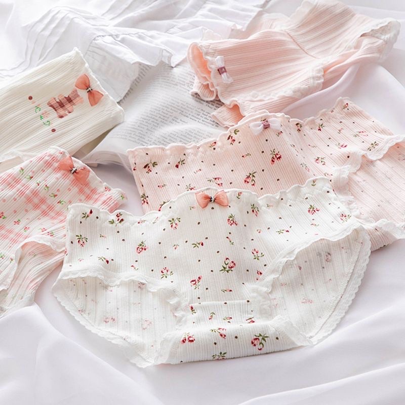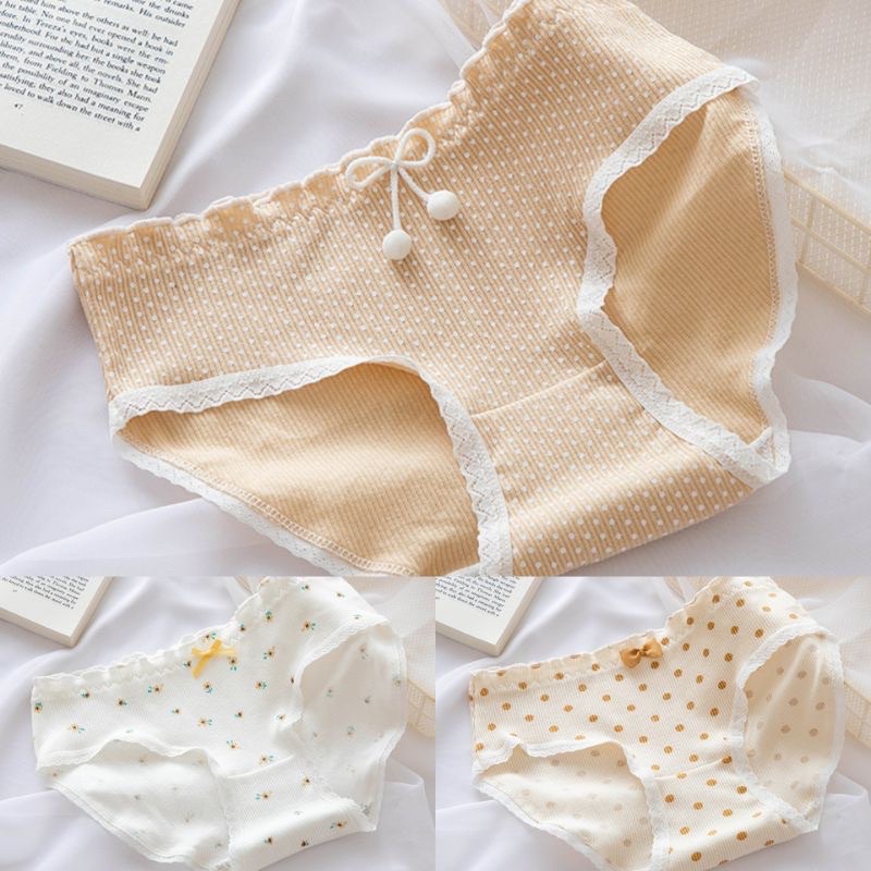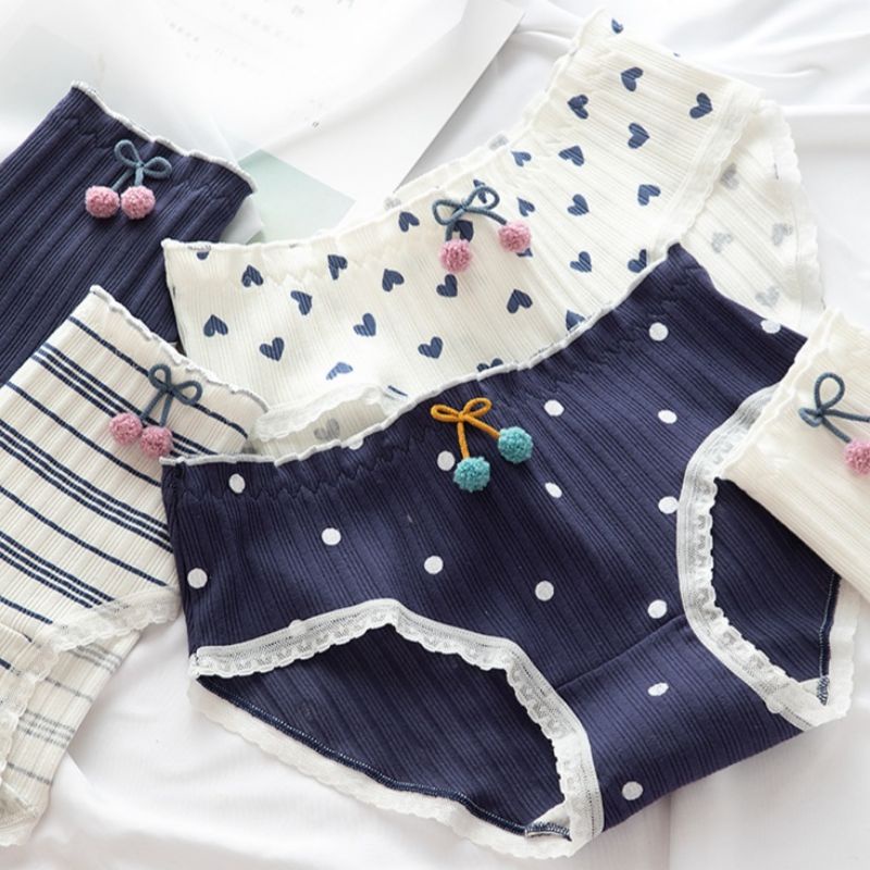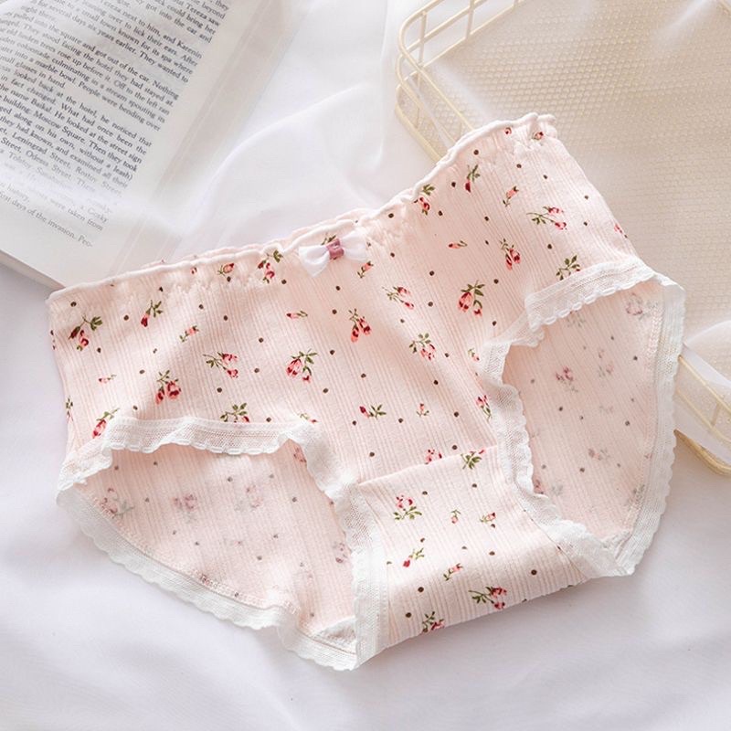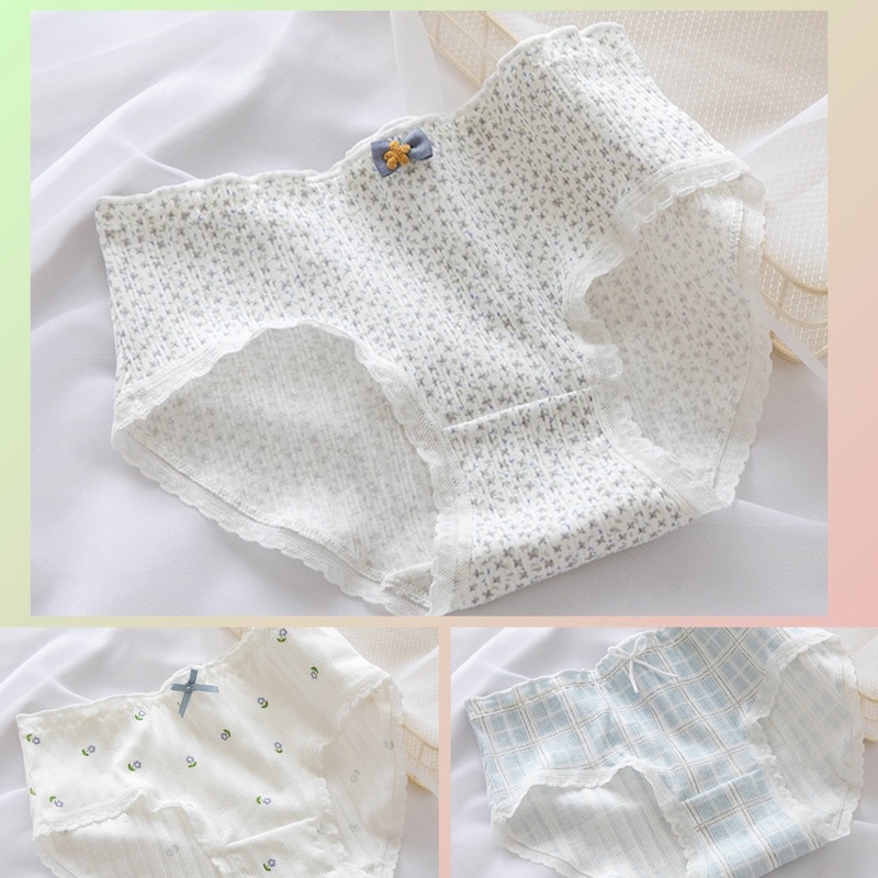 Nanoshop Teens Floral Panties Low to Mid Waist Cotton with Lace Edge Panty Slim Fit Pack of 3
