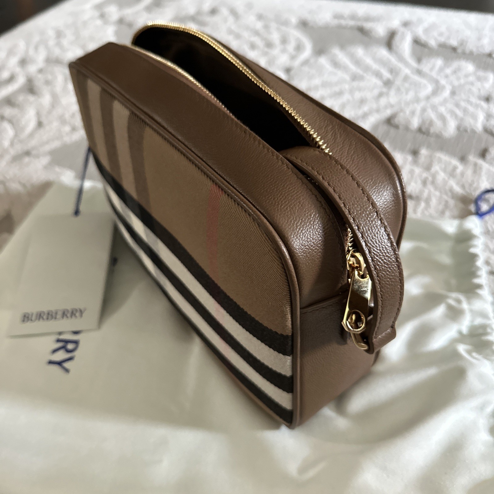 Authentic NEW BURBERRY Women's Large Earth Brown CAMERA Crossbody Check Bag