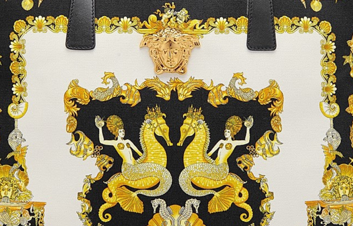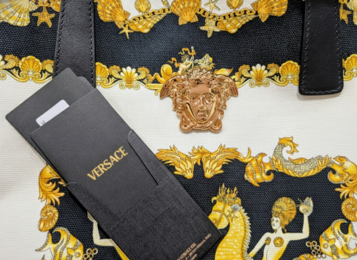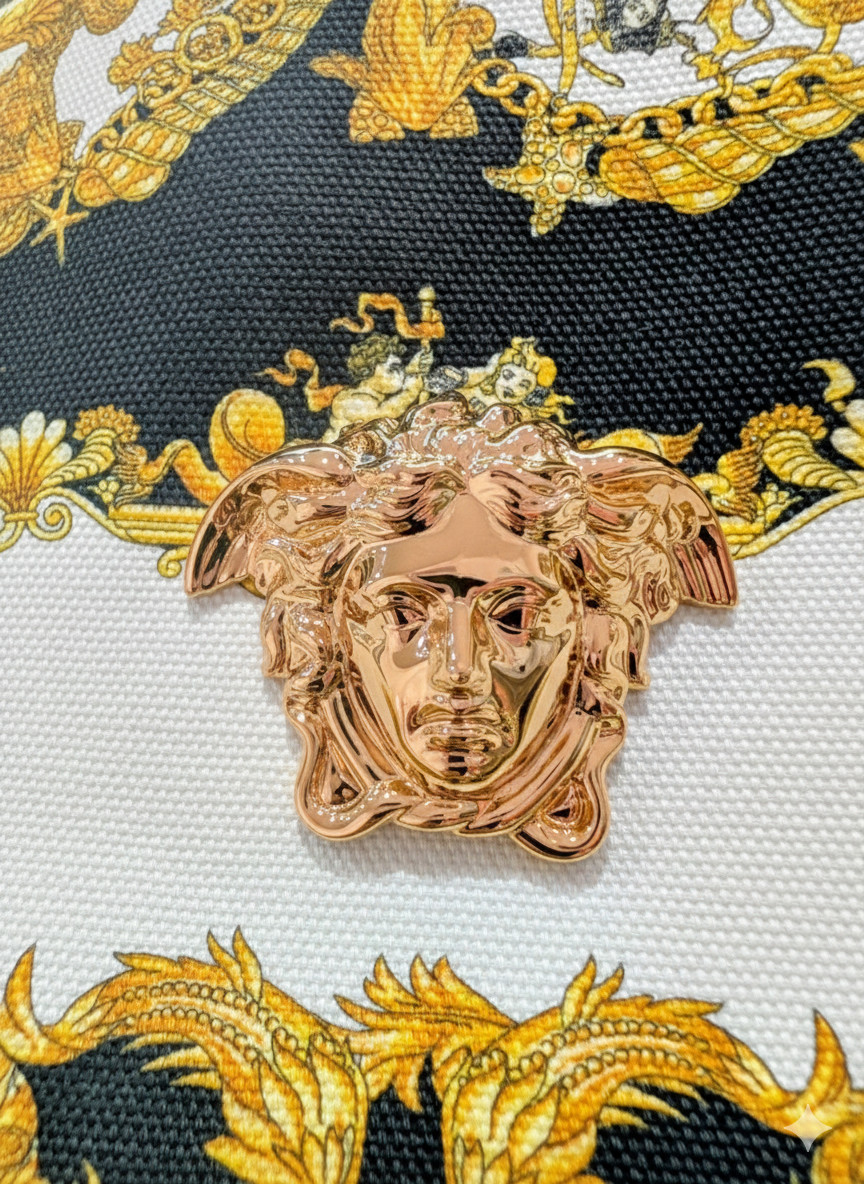 Signature Medusa: Adorned with the powerful, unmistakable Versace Medusa head emblem in gleaming gold-tone hardware at the center top.