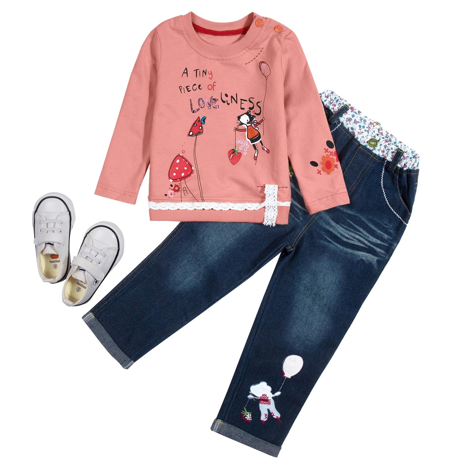 Package Include: 1 x long sleeve cartoon graphic pullover 1 x denim pants. Best gift for your daughter, granddaughter, niece, or friend's baby girls. They will definitely love it.