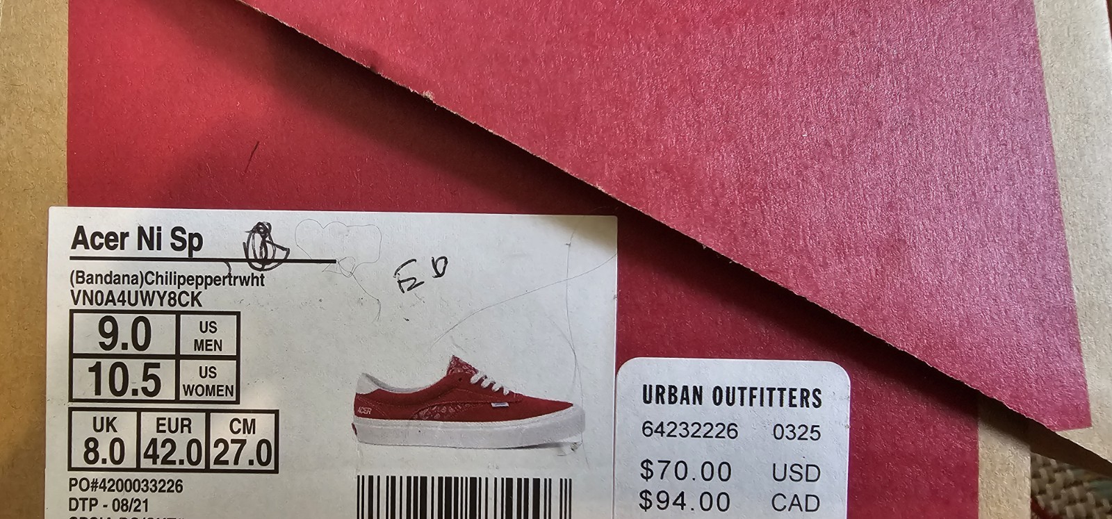 BRAND NEW Vans Acer NI SP Bandana Chili Pepper Red Men's Size 10.5 LOOK!