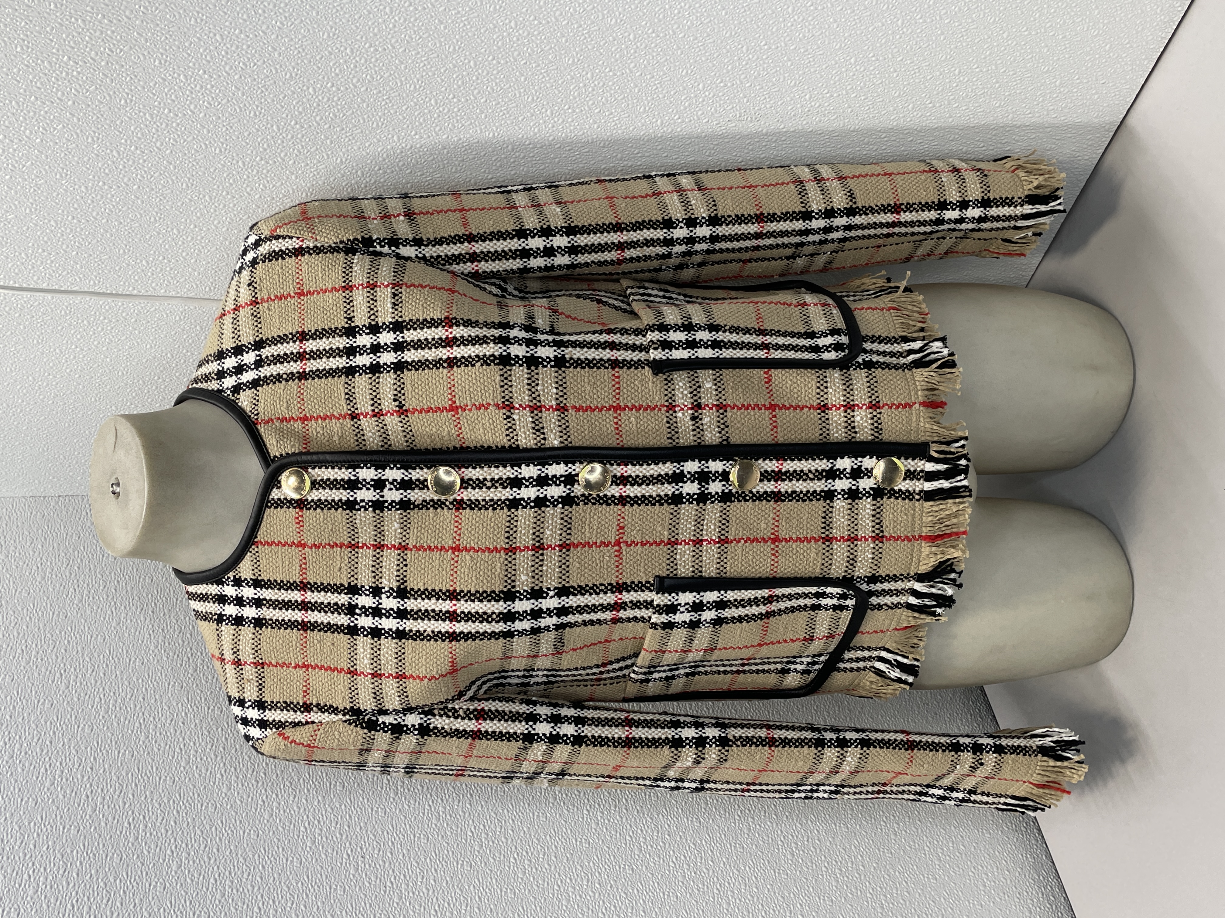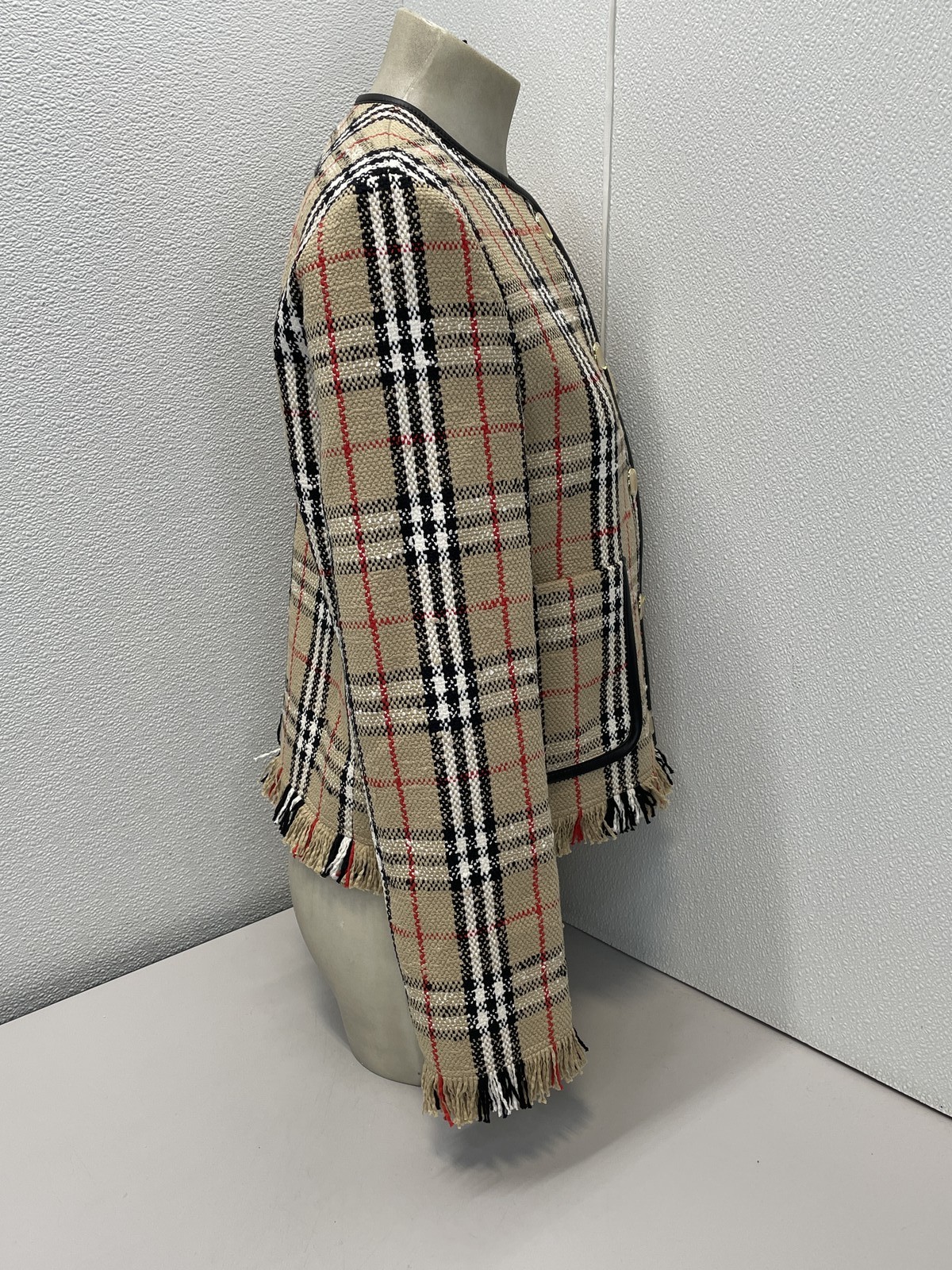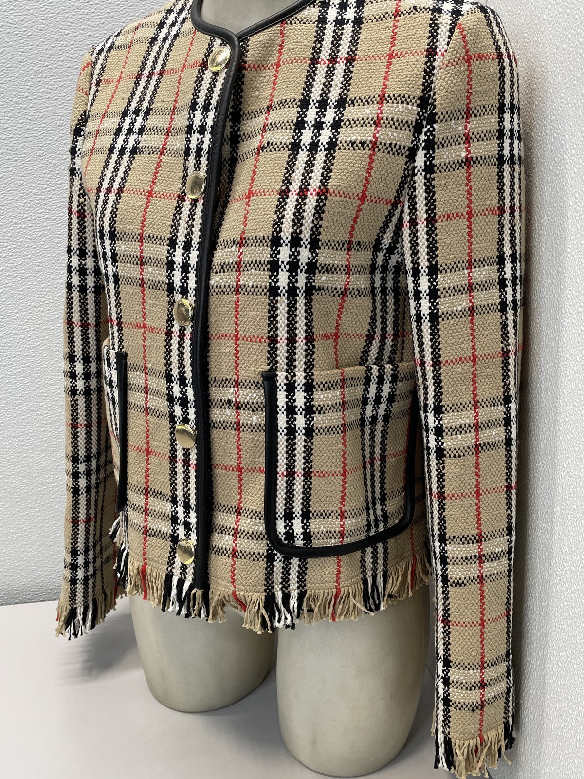 Burberry Women's Jacket Vintage Style Check Boucle Size 4 Sand