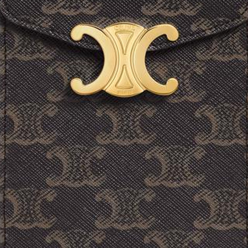 CELINE Triomphe Canvas Cell Phone Pouch Women's Brown 3.9×1.2×4.5 in