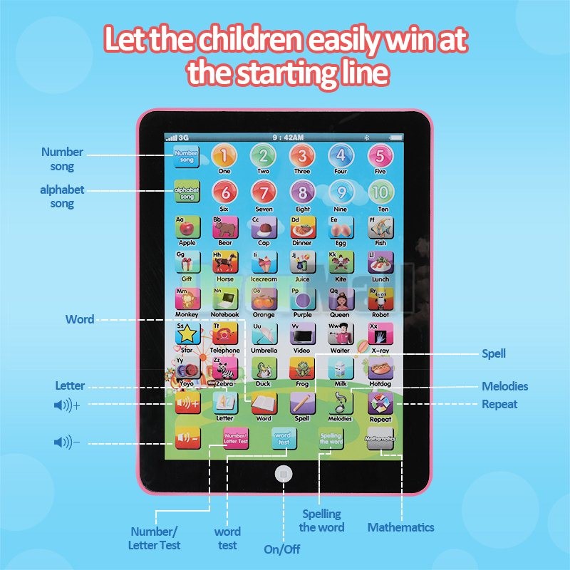 ?Delicate WorkmanshipEarly learning tablet's delicate workmanship and non-toxic ABS material make this toy safe for child.