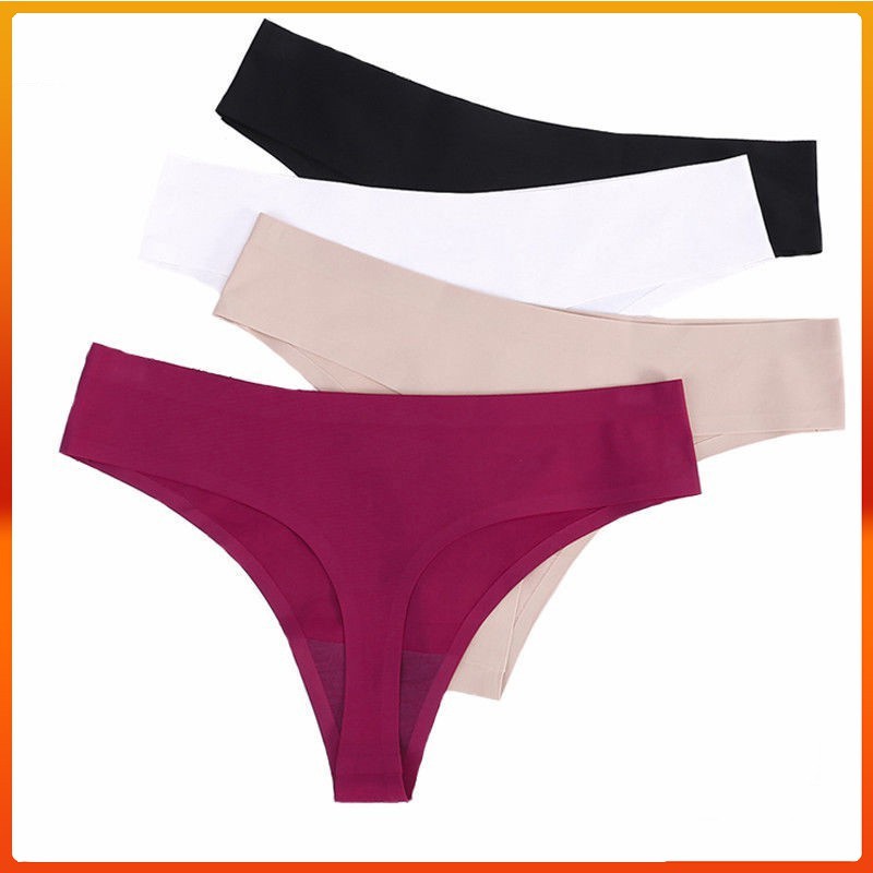 Women Thongs Underwear Sexy Seamless G-String Solid Soft Ice Silk Briefs Panties