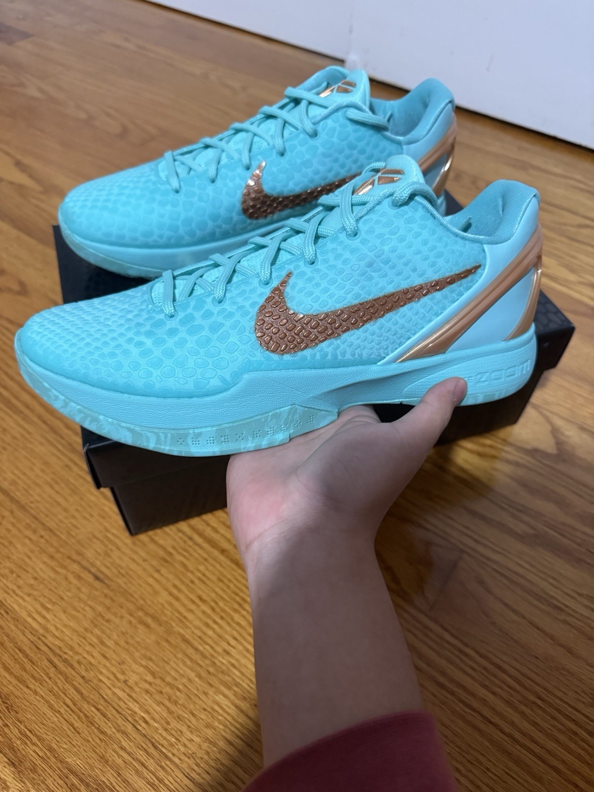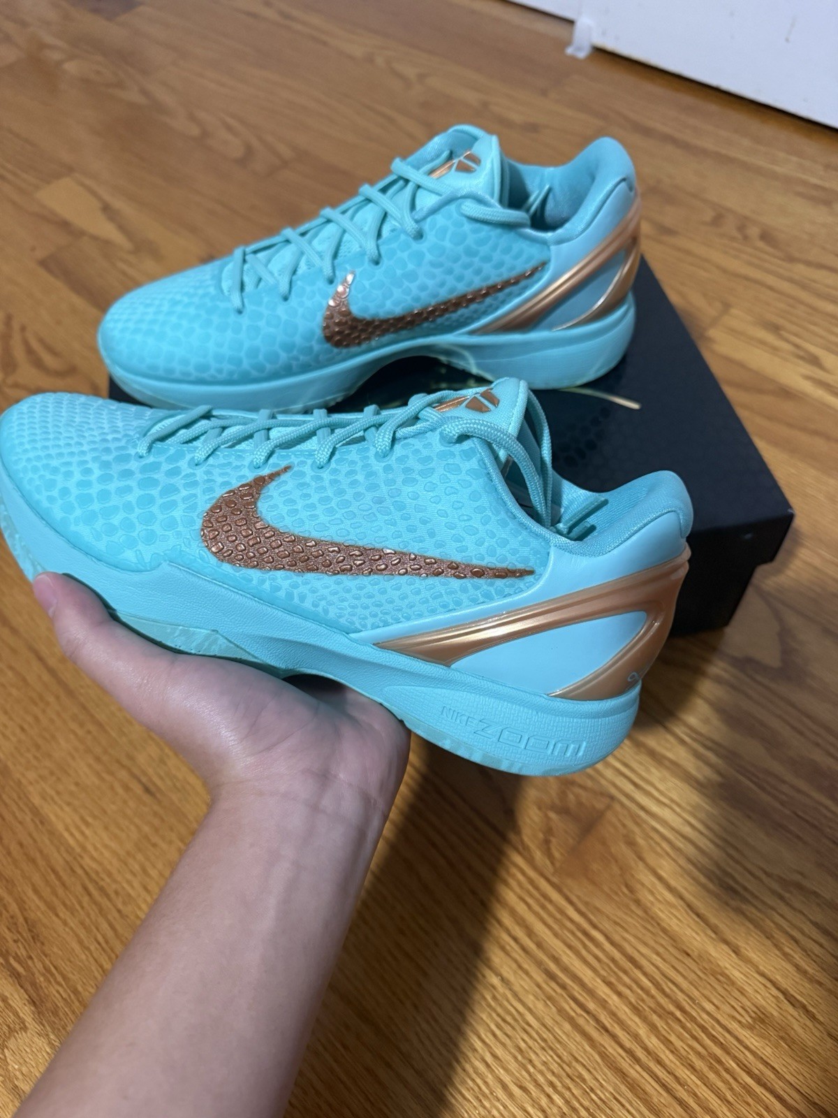 The Kobe 6 Statue of Liberty sneakers in size 10 are a stylish and comfortable choice for athletic activities, particularly basketball. These sneakers feature a lace-up closure, rubber outsole, and low-top silhouette, with a color scheme inspired by the Statue of Liberty. Released in 2025, these Nike-designed shoes offer a combination of performance and style for the summer season. The standard shoe width and foam insole provide a comfortable fit for all-day wear, making them a great option for both casual wear and sports.