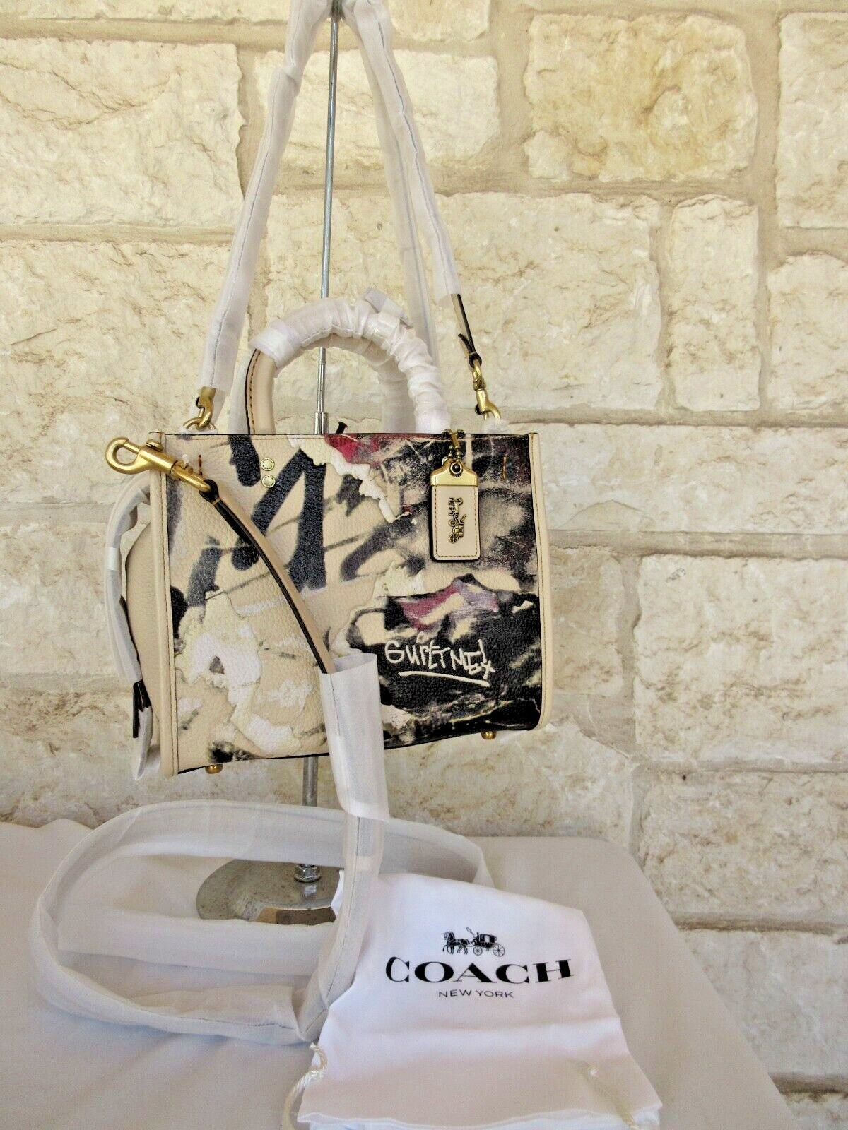 Purse: NWT COACH X MINT & SERF IVORY GRAFFITI ROGUE 25 (NWT Coach tag 1/2).