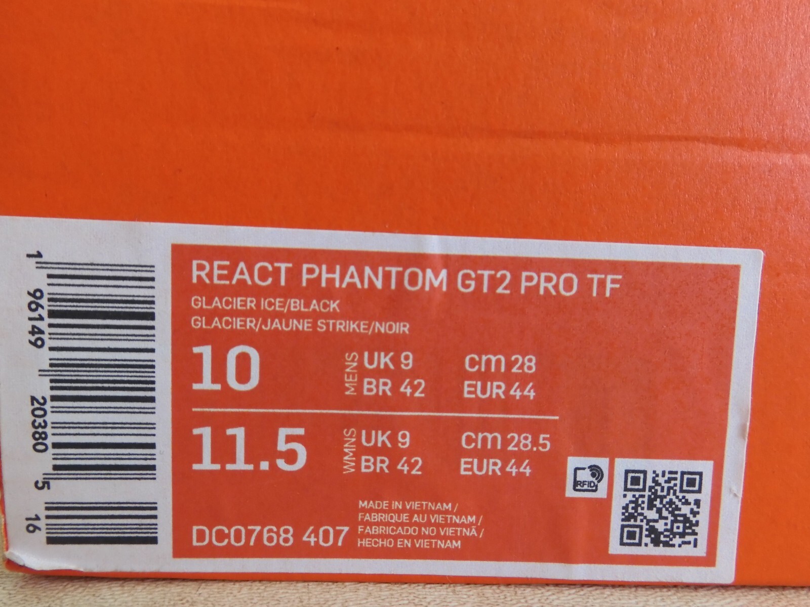 This is a pair of 100% AUTHENTIC BRAND NEW. NIKE REACT PHANTOM GT2 PRO TF "TURF SOCCER CLEATS". They have a cool Glacier Ice Blue-Black color combination. These stylish soccer cleats offers great ball control and accuracy. Lightweight with a synthetic leather upper for comfort. Three shot shield options for better ball control and accuracy.