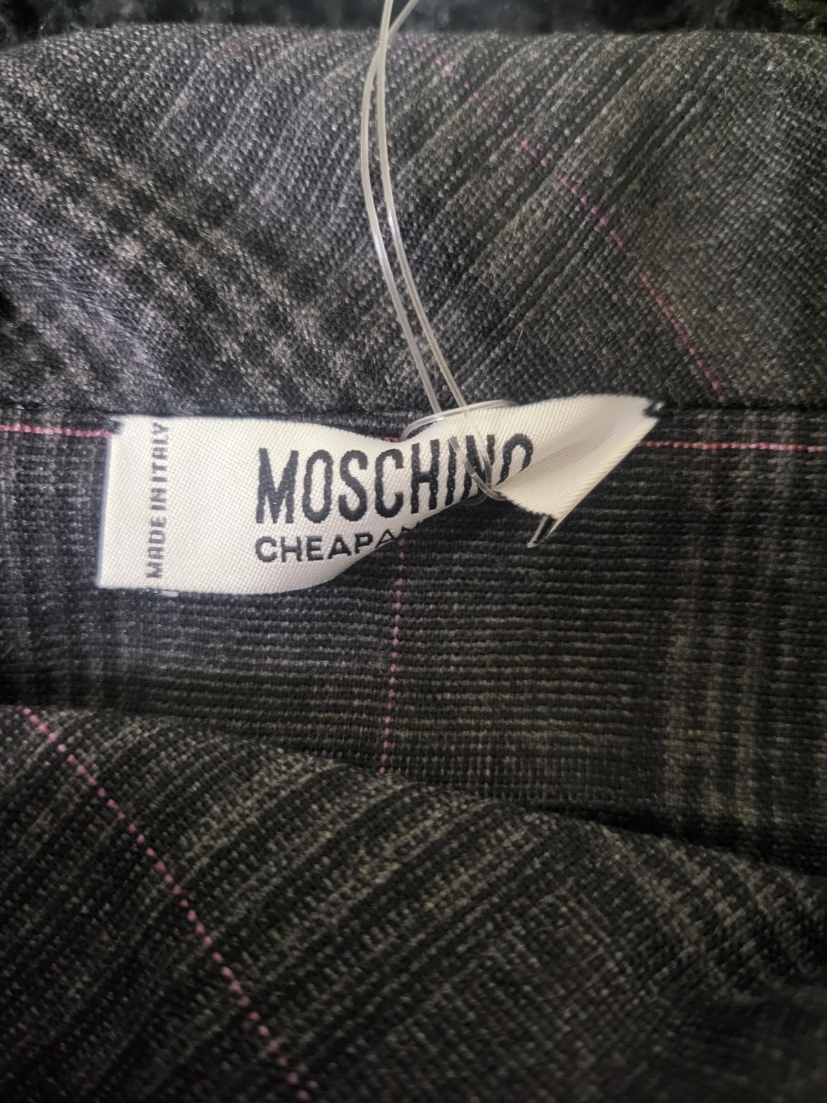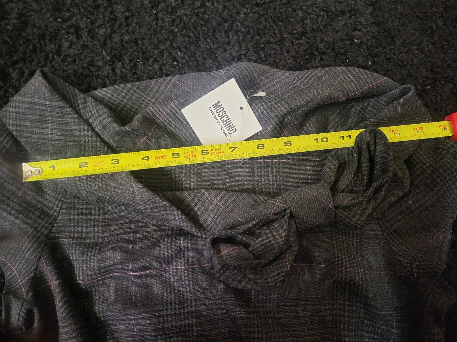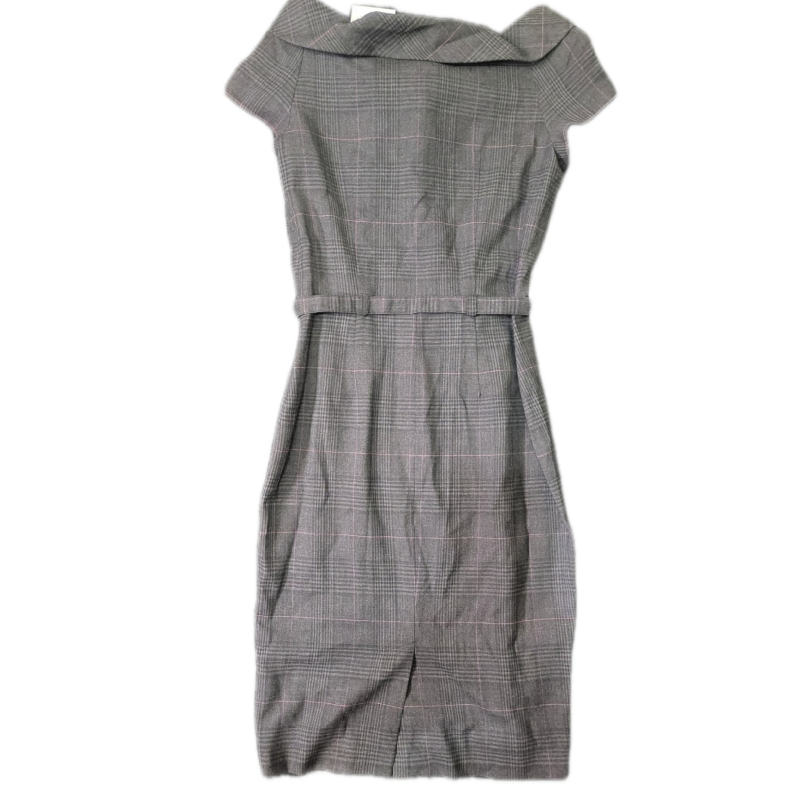 The NWT Moschino luxury plaid pencil dress is a stylish and sophisticated choice for women. This designer dress features a unique bow neck design and a belted waist, adding a touch of elegance and flair. Made by the renowned brand Moschino, this dress combines classic elements with modern details, making it a versatile and timeless piece for any wardrobe. Perfect for a special occasion or a chic day out, this dress is sure to make a statement with its plaid pattern and eye-catching accents.