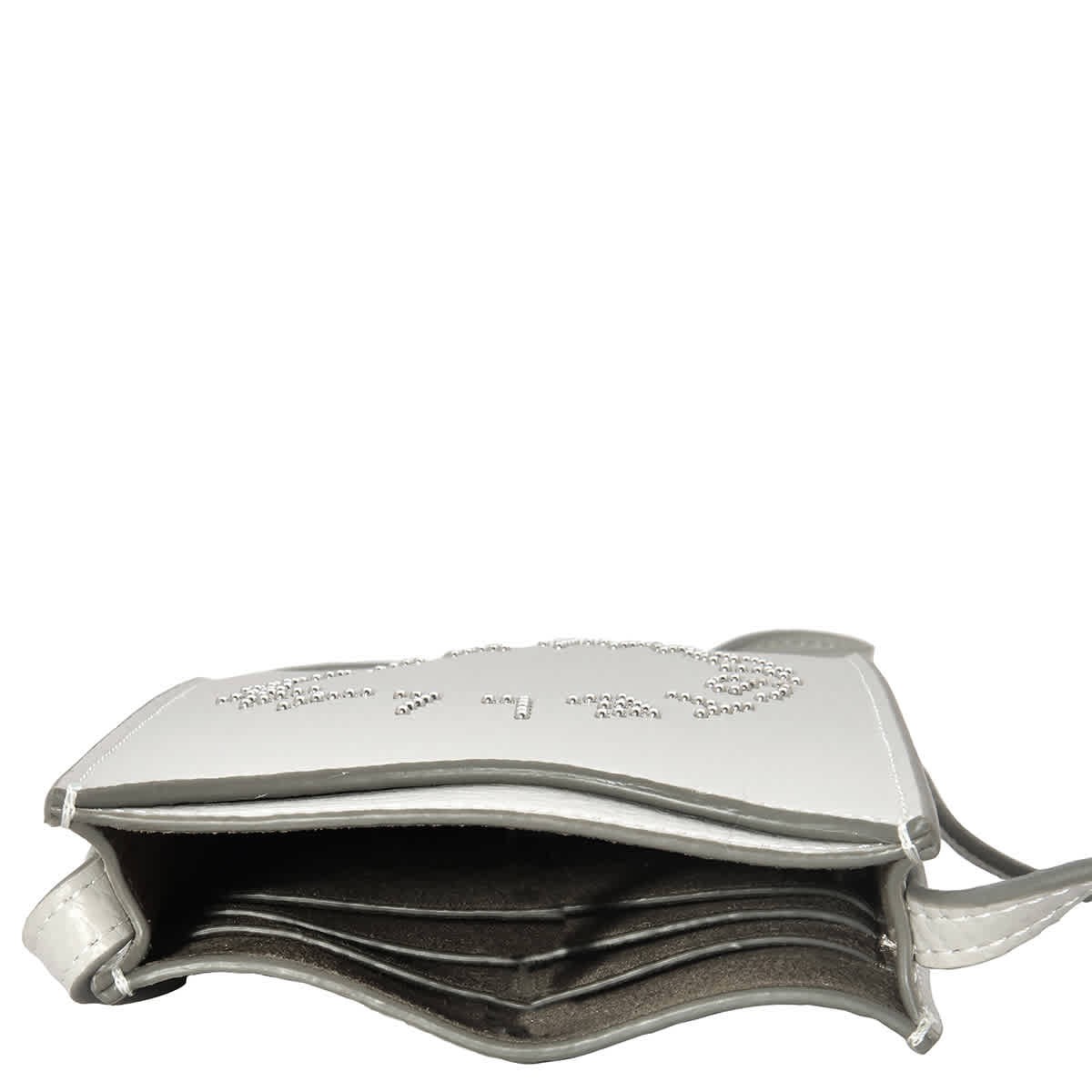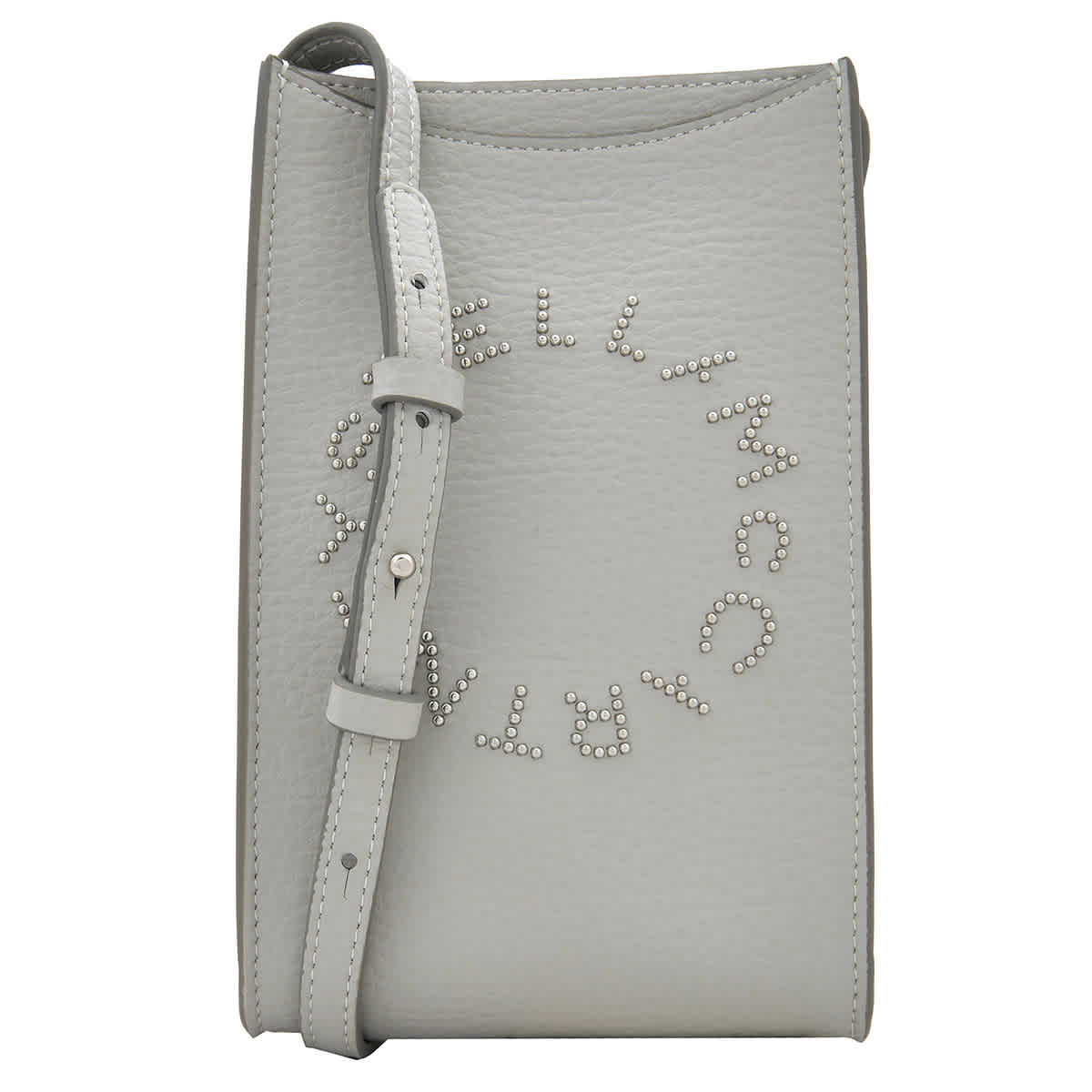 Stella McCartney Ladies Pouch. SKU: 7P0047WP0234-1401. Barcode: 3666015941959. Color: Grey. Size: 11 x 17.5 x 3cm. Stella McCartney Alter Mat Logo Crossbody Phone Pouch. This Stella McCartney bag features a medallion logo on the front, contrast single topstitching, an adjustable buckle crossbody strap, a phone pouch, a back pouch pocket, three card slots, and an Alter Suede lining. 100% Leather. Made in Italy.