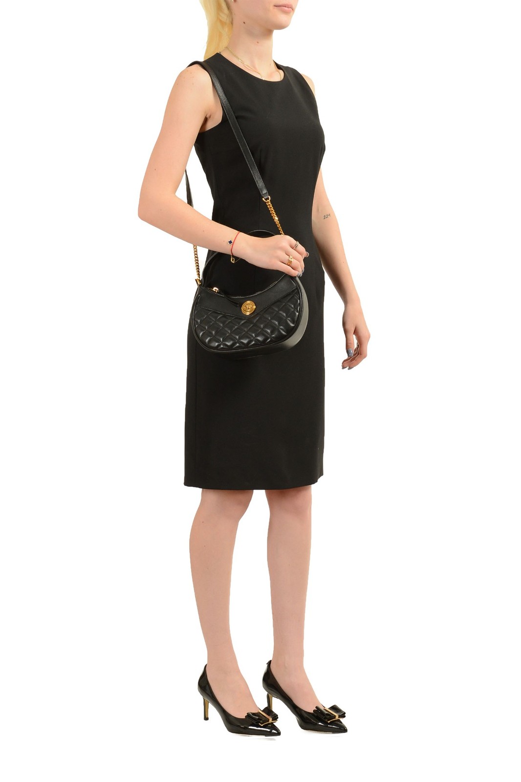 This is authentic Versace Women's "Half Moon" Leather Gold Medusa Quilted Handbag Shoulder Bag