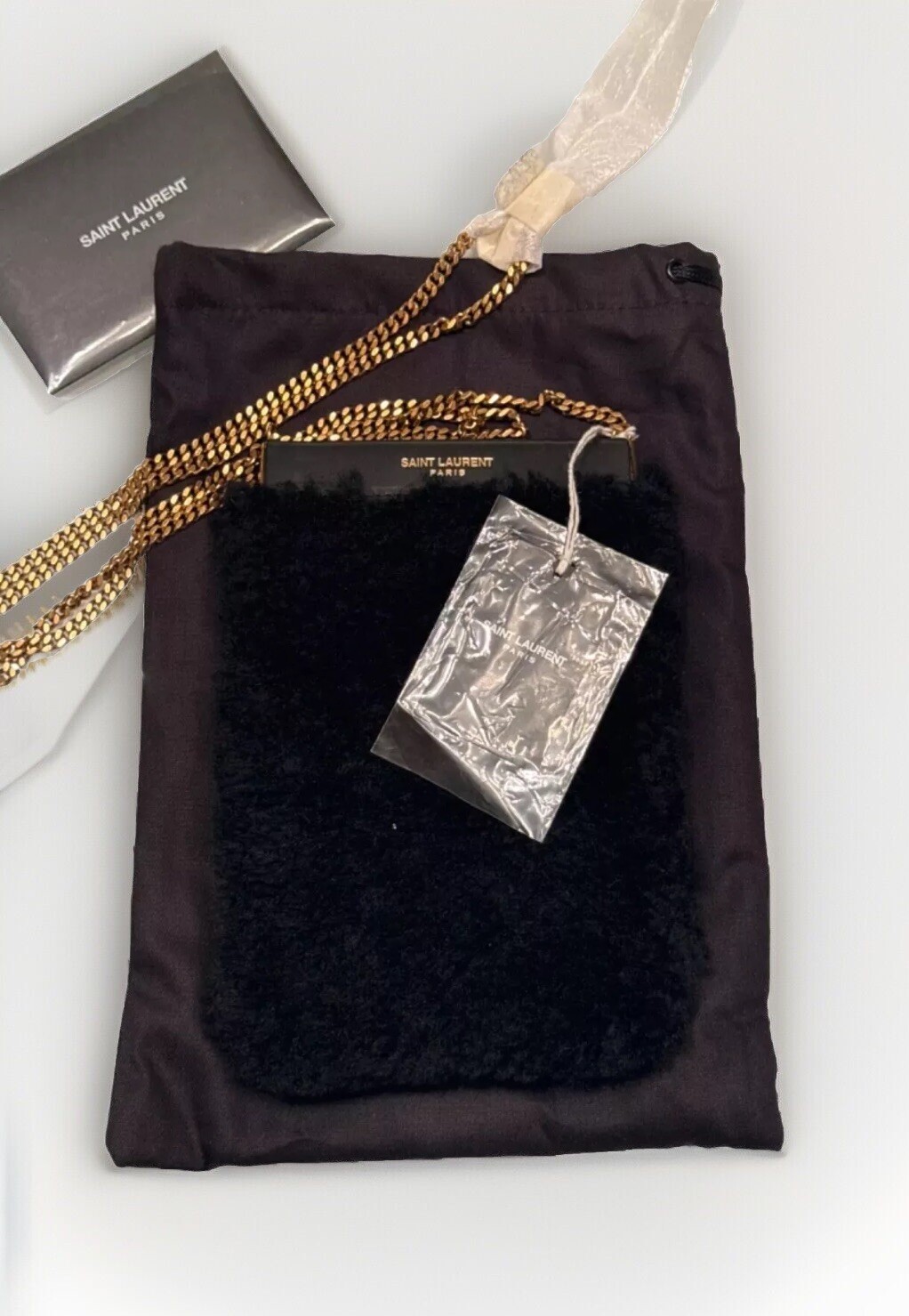 YSL Saint Laurent Black Shearling Mini Pac Pac Shoulder Bag NWT AND BOX